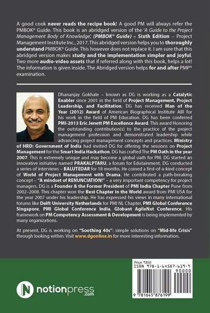 A good cook refers! PMBOK(R) is a recipe book and hence a good PM will always refer to it. To refer means to seek help while doing! PMBOK(R) is an artefact that one needs to refer to before and even after the exam! This book Abridged Guide to PMBOK(R) makes your study and implementation simpler and joyful.