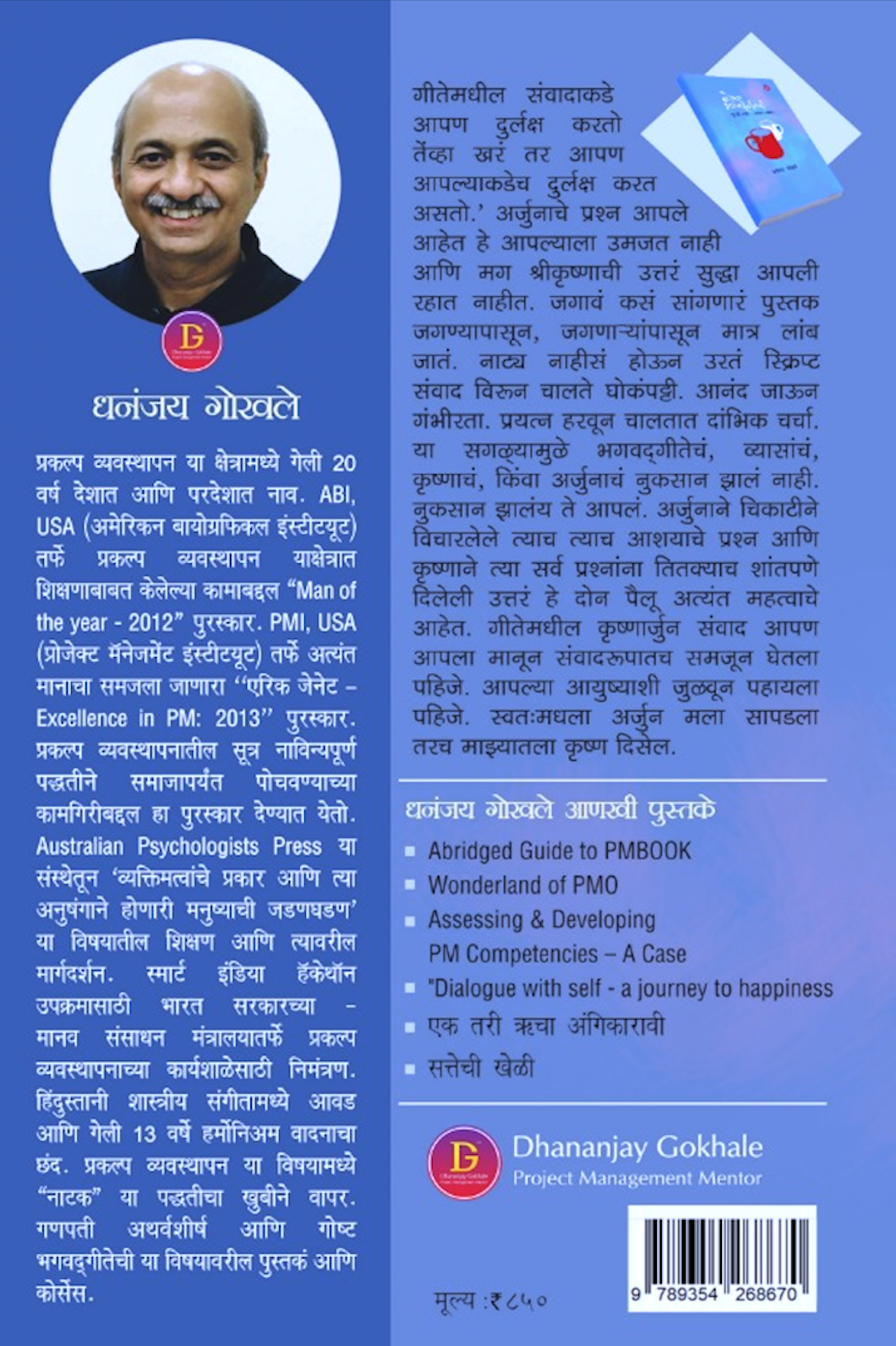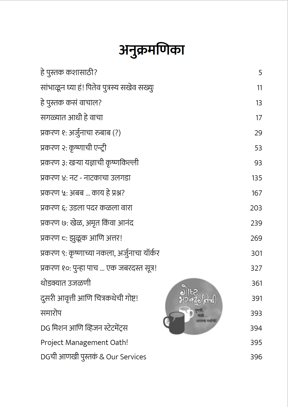 अर्जुनाचे प्रश्न आपलेच आहेत हे उमजत नाही आणि मग श्रीकृष्णाची उत्तरं सुद्धा आपली रहात नाहीत. जगावं कसं हे सांगणारं पुस्तक जगण्यापासून लांब जातं. या सगळ्यामुळे व्यासांचं, कृष्णाचं, किंवा अर्जुनाचं नाही तर आपलं नुकसान झालंय. बिगरी ते मॅट्रिक या कथनात पु.ल.म्हणतात की ‘मला कर्ता आला, कर्म आलं पण इंग्रजी आलं नाही‘. तसंच ‘मला सगळ्या अध्यायांची नावं पाठ झाली, श्लोक पाठ झाले, पण गीतेमधली गम्मत काही कळली नाही.’ असं नको ना व्हायला? तर मग कॉफीशॉपमध्ये चाललेल्या दोन मित्रांच्या हृद्य गप्पांसारखा हा संवाद अनुभवुया. प्रश्न विचारण्याची अर्जुनाची चिकाटी आणि उत्तरं देण्याची कृष्णाची हातोटी यांनी सजलेलं हे आनंददायी नाट्य आहे. घोकंपट्टीचं संवादात, गंभीरतेचं आनंदात, आणि दांभिक चर्चांचं प्रामाणिक प्रयत्नात रूपांतर करूया. त्यासाठी हे पुस्तक नक्की मदत करेल.